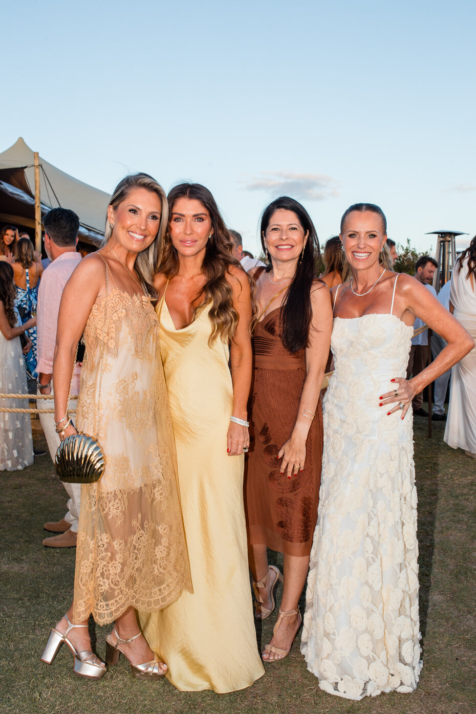 Bettina e Pedro Becker, da NB Eventos, organizaram uma comemoração que começou tendo o pôr do sol como cenário e seguiu até tarde com a pista de dança vibrando. Destaque para o vestido que Claudia escolheu para a ocasião: um modelo de Alexander McQueen, muito elogiado.